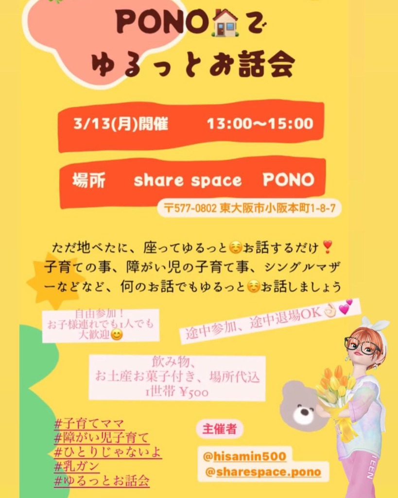 頑張るみんなを応援したいと思い、ご新規でのご利用の方に限り、ponoの施設利用料を1時間当たり500円でご利用をいただけます。